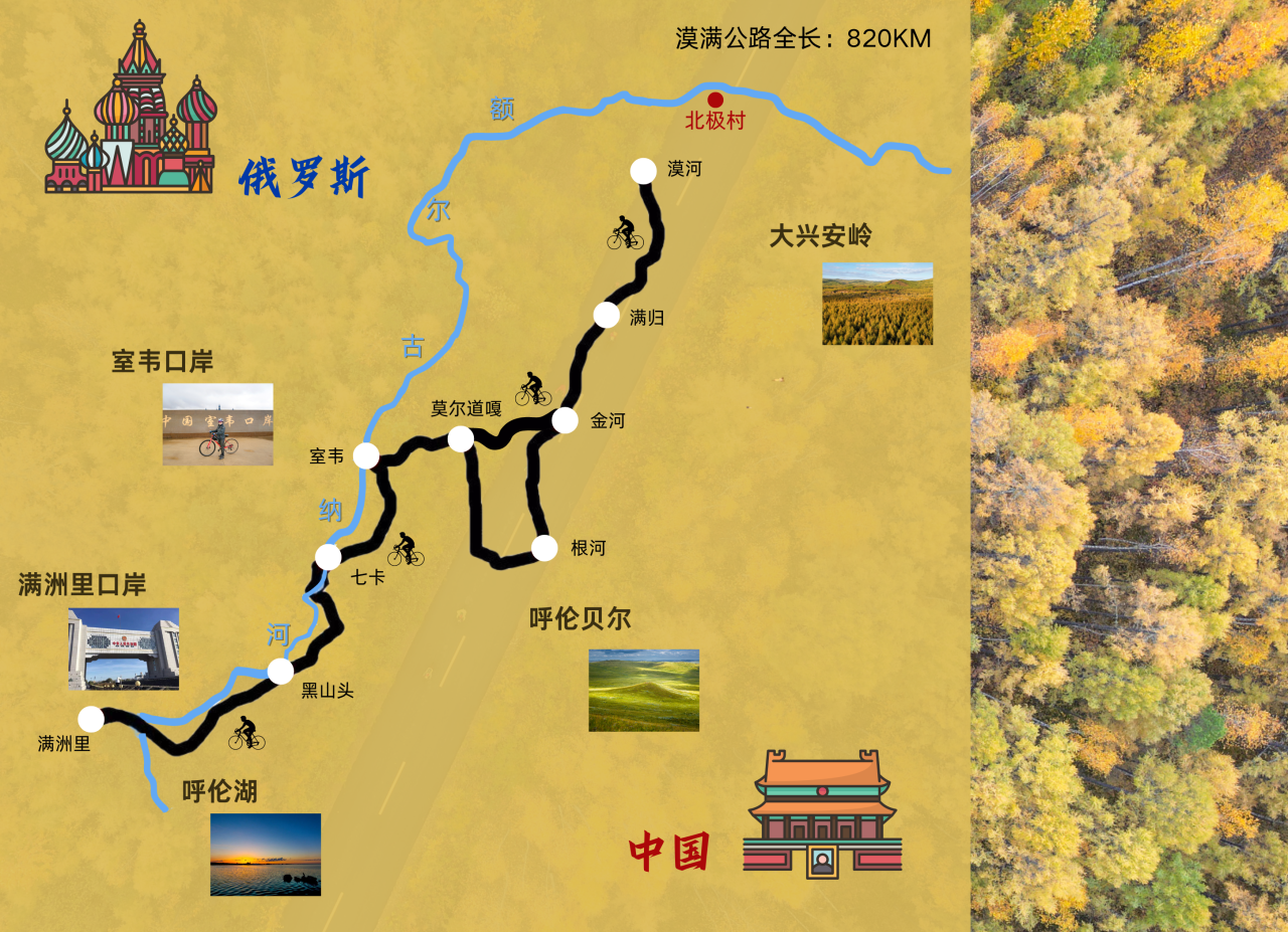 以下活动行程以正向骑行(漠河-满洲里)为大家详细介绍!