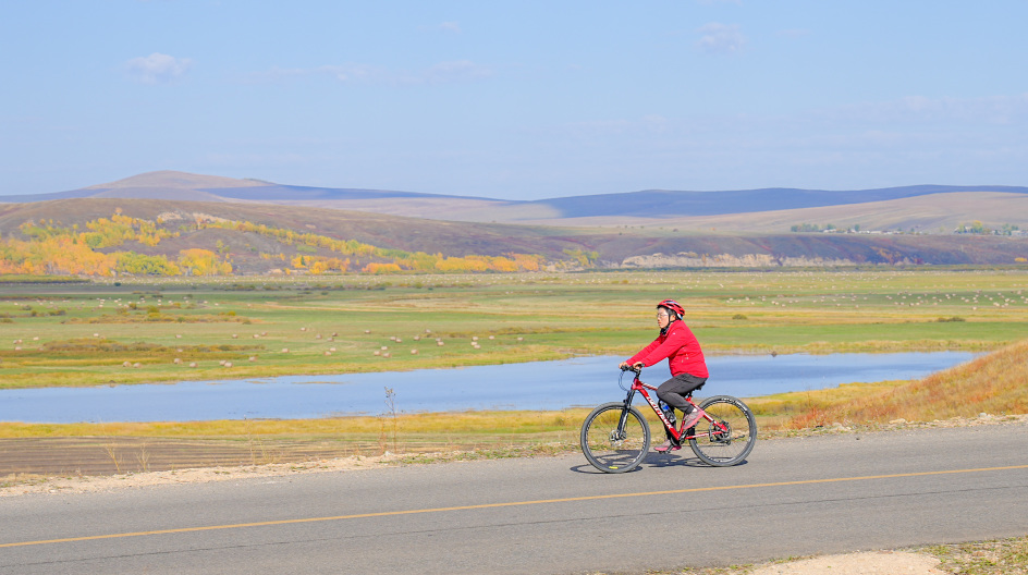 今天是骑行的最后一天,我们将进入更为辽阔的呼伦贝尔大草原,沐浴在草原的阳光里骑行,看牛羊悠悠,雄鹰振翅,“天苍苍地茫茫,风吹草低见牛羊”的诗情画意不断在眼前浮现。