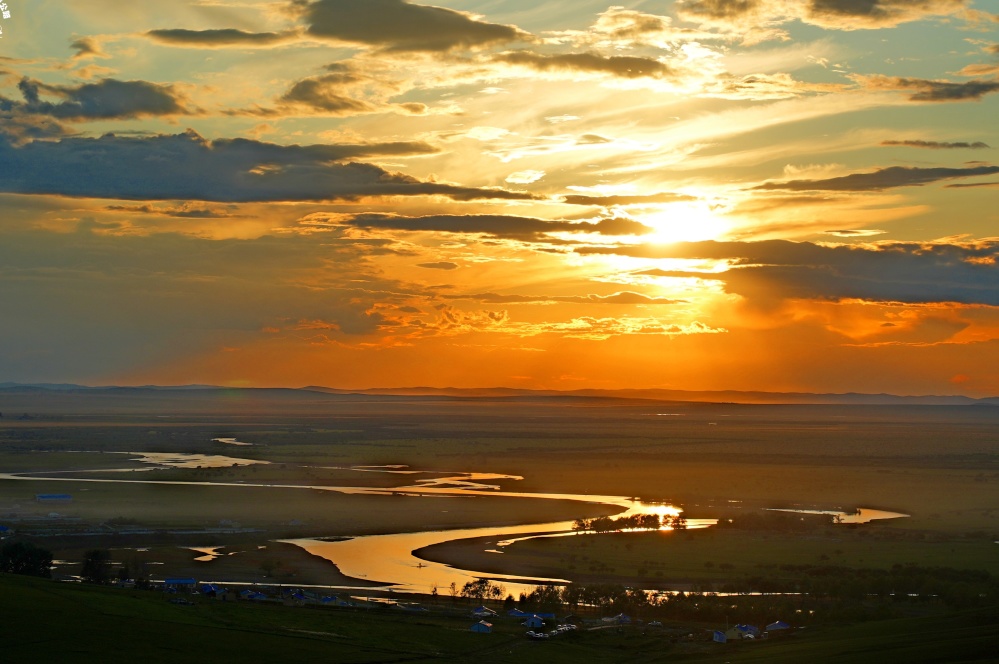 今日一路沿着中俄界河——额尔古纳河骑行,进入额尔古纳河湿地地貌。同时与"世界上最美的草原"——呼伦贝尔大草原相遇,我们将一路驶向黑山头,路两边是无边无际的草原,蓝天白云一直挂在天边。黑山头这里本是一座古城,因位于额尔古纳市黑山头而得名,属于辽代遗址,是成吉思汗弟弟的封地。今夜黑山头的日落是我们不可错过的风景,站在中国的大地,看唯美的夕阳从俄罗斯缓缓落下,落日的余辉照亮额尔古纳河和整个天际。