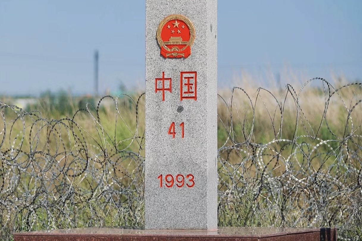 1994年中俄在勘定边界的时候,设立的41号界碑,正面为汉语,背面为俄语,是祖国领土的象征,庄严神圣,不可侵犯。