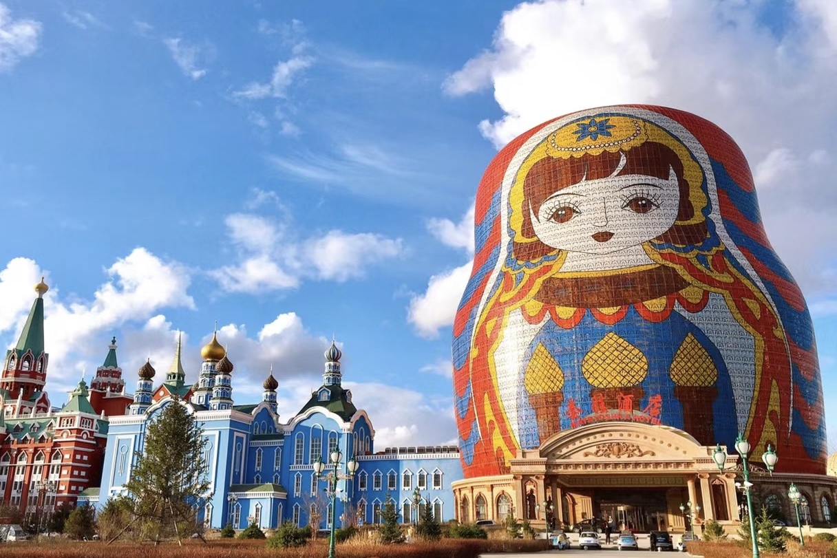 位于满洲里的套娃广场,是国家5A级旅游景区中俄边境旅游区的重要组成部分,是全国唯一以俄罗斯传统工艺品——套娃形象为主题的大型综合旅游度假景区。是喝茶、休闲、读书、漫步的好去处,刚刚结束长途旅行的小伙伴们可以在这里享受一下欧式慢时光。夕阳西下,仿佛置身红场,别有一番风情。