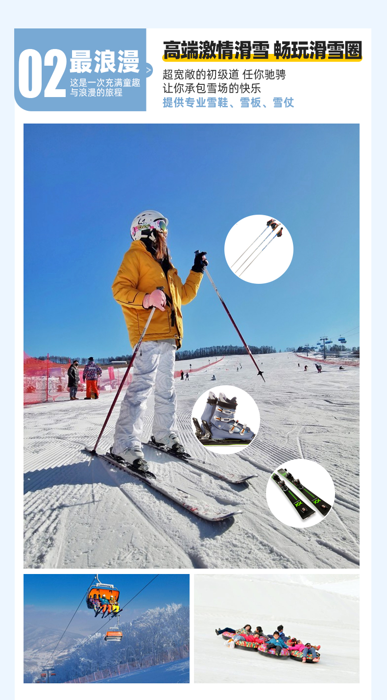 【滑雪畅玩】赠送雪场不限时滑雪,雪仗、雪板、雪鞋、头盔都是赠送使用的(儿童不赠送)