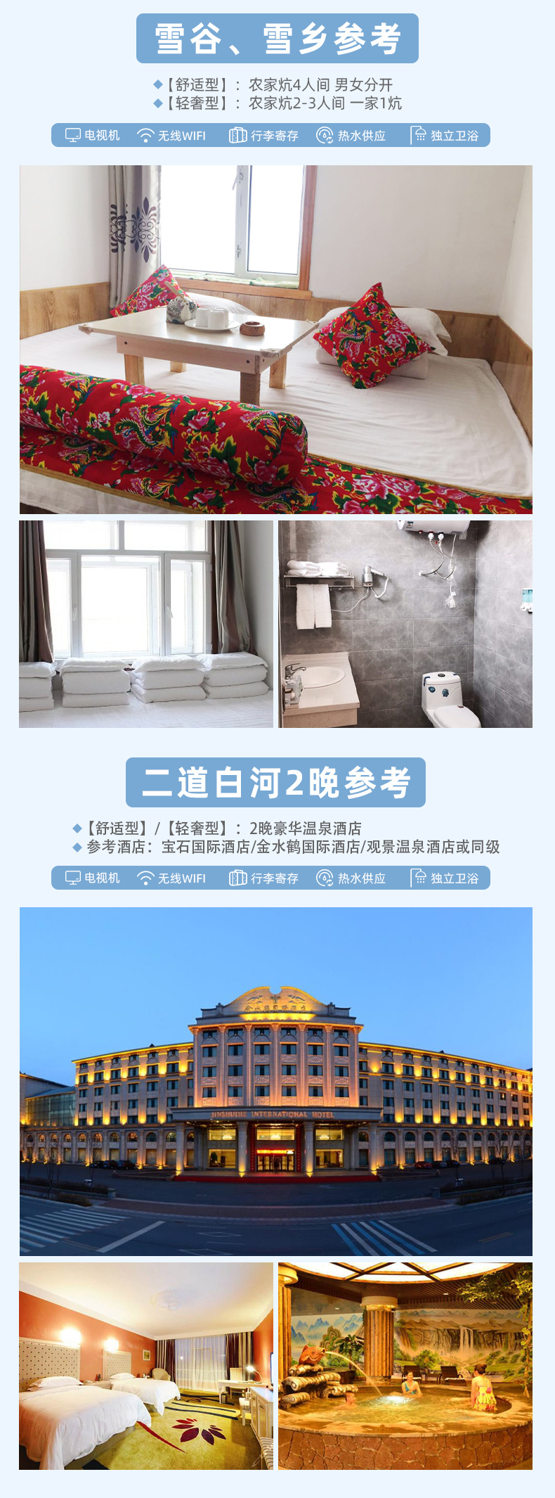 参考酒店:宝石国际酒店/金水鹤国际酒店/观景温泉酒店或同级