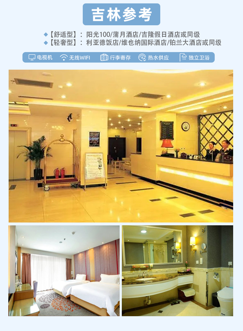 参考酒店:阳光100/蒲月酒店/吉龙假日或同级