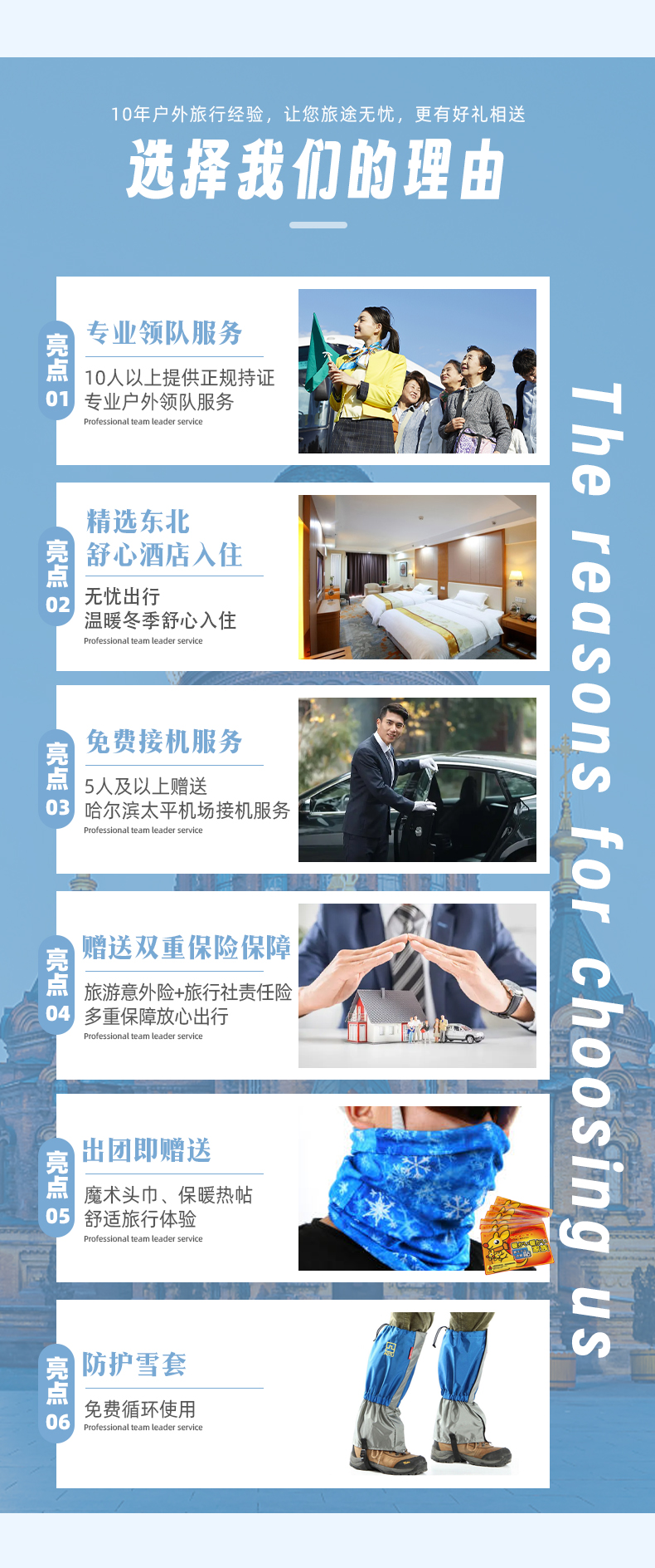 【用车】全程包车费,(过路费,油费,过桥费。司机食宿费等(手续齐全的正规空调旅游车,全程暖气开放,车内卫生整洁,含20-40万座位险,确保您在冰天雪地旅途中的舒适与安全,上车前请检查是否手续齐全)