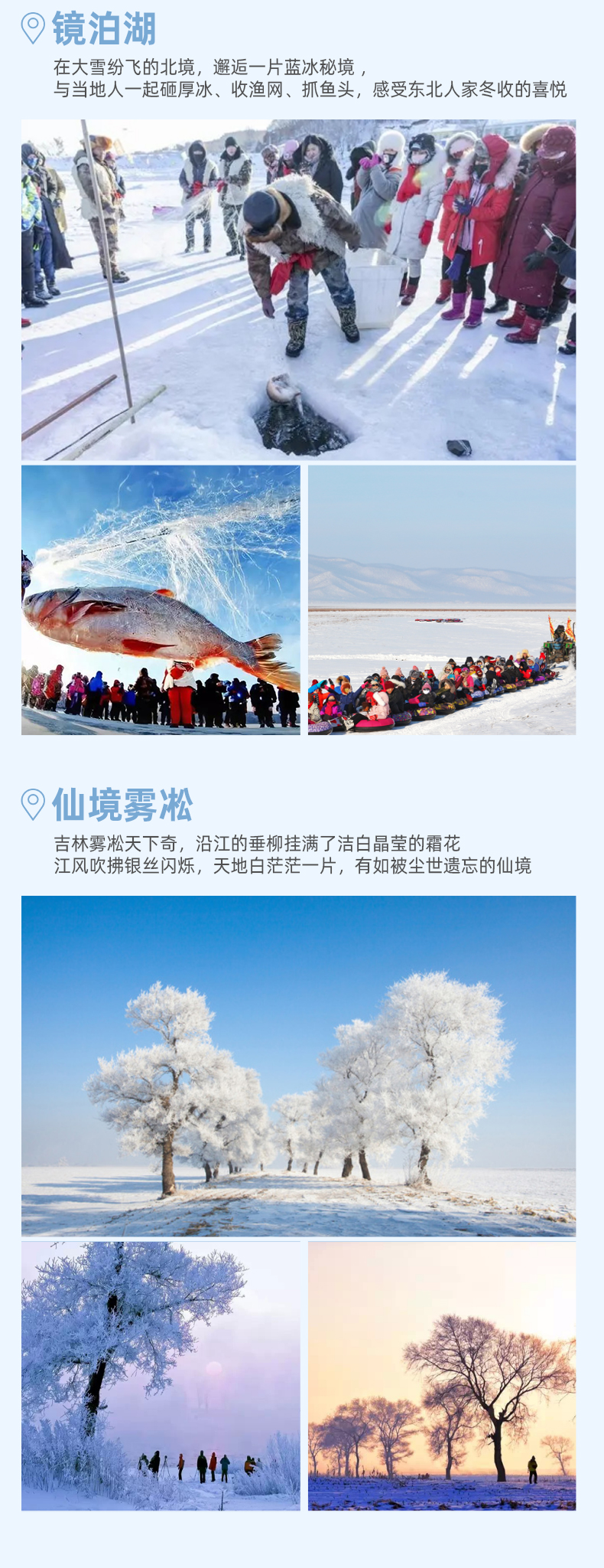 4.冬捕12月中旬冰冻达到70厘米的厚度,才可在冰面上活动(冬捕每年12月中旬-次年2月赠送)