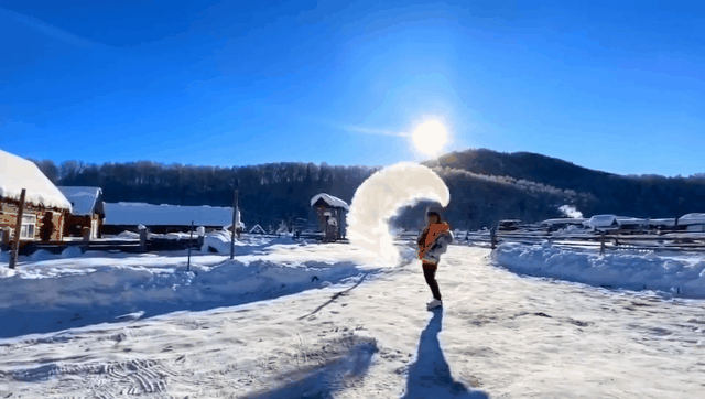 【泼水成冰】出发前别忘了灌一瓶开水呀,咱们也来拍一个泼水成冰小视频,上热搜也说不定
