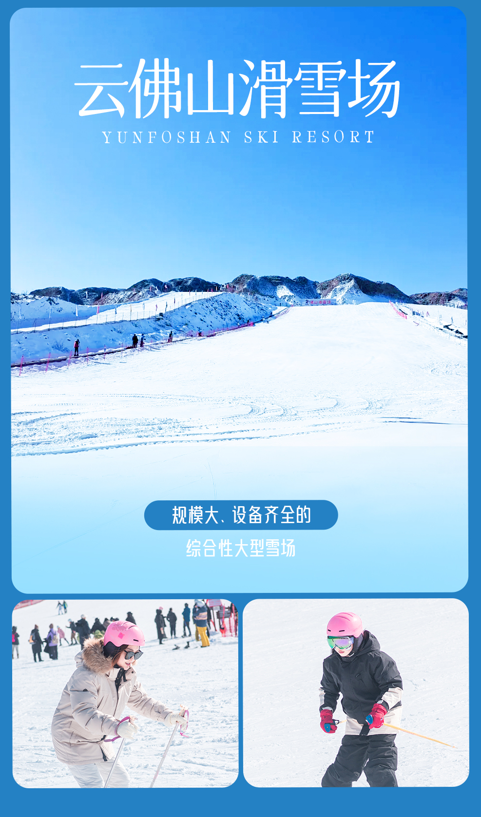 早餐后,我们出发前往【云佛山滑雪场】,这是华北地区规模zui大,设施齐全的绿色滑雪场,三面环山,环境优美,是一座集住宿、餐饮、会议、娱乐、健身为一体的大型综合性的滑雪旅游胜地,以孤山寨千危谷峭壁为舞,搭建起冰雪世界,用冰山、冰瀑、冰坡、冰花,塑造出气势磅礴的极地世界。