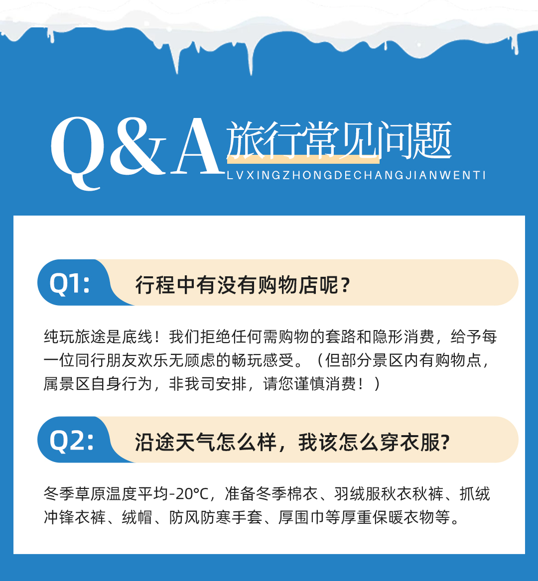 ①衣服:冬季草原温度平均-20℃,11月/12月/1月/2月准备冬季棉衣、羽绒服、秋衣秋裤、抓绒冲锋衣裤、绒帽、防风防寒手套、厚围巾等厚重保暖衣物...