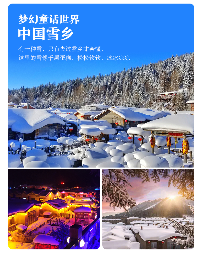 √ 游玩08:00-11:00,「棒槌山栈道」,这里是一条看景物、体民俗、观夜景、眺远山、赏雪乡四季风光的观光栈道,主栈道继续蜿蜒向上途经棒槌亭、怪角亭、将军亭、将军廊、五角亭、三叠廊,最后抵达风光无限观景台。乘坐东北原始交通工具「马拉爬犁」,体验传统的东北农村生活!在屋脊上悬而未落的积雪,带着炫酷墨镜的哈士奇,“爸爸去哪儿”拍摄房屋,「雪乡博物馆」,“中国雪乡”大石碑与大木门,摆放整齐的冻梨、柿子以及当地的风土人情都将吸引着您的眼球与味蕾!「雪乡邮局」可以邮寄一张梦幻明星片,给远方的亲人和朋友哦。