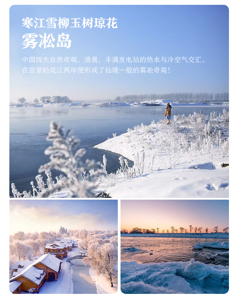 √ 车程06:30-07:30,前往【雾凇岛】,吉林雾凇与桂林山水、云南石林、长江三峡被称为中国四大自然奇观。