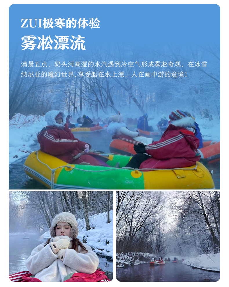 √ 车程06:30-06:45,前往体验【雾凇漂流】。