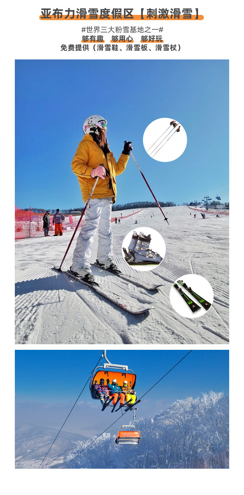 08:00从哈尔滨出发,穿越林海,一路飞驰,前往滑雪胜地—【亚布力旅游度假区】。沿途都是千里冰封、万里雪飘的宜人景色。