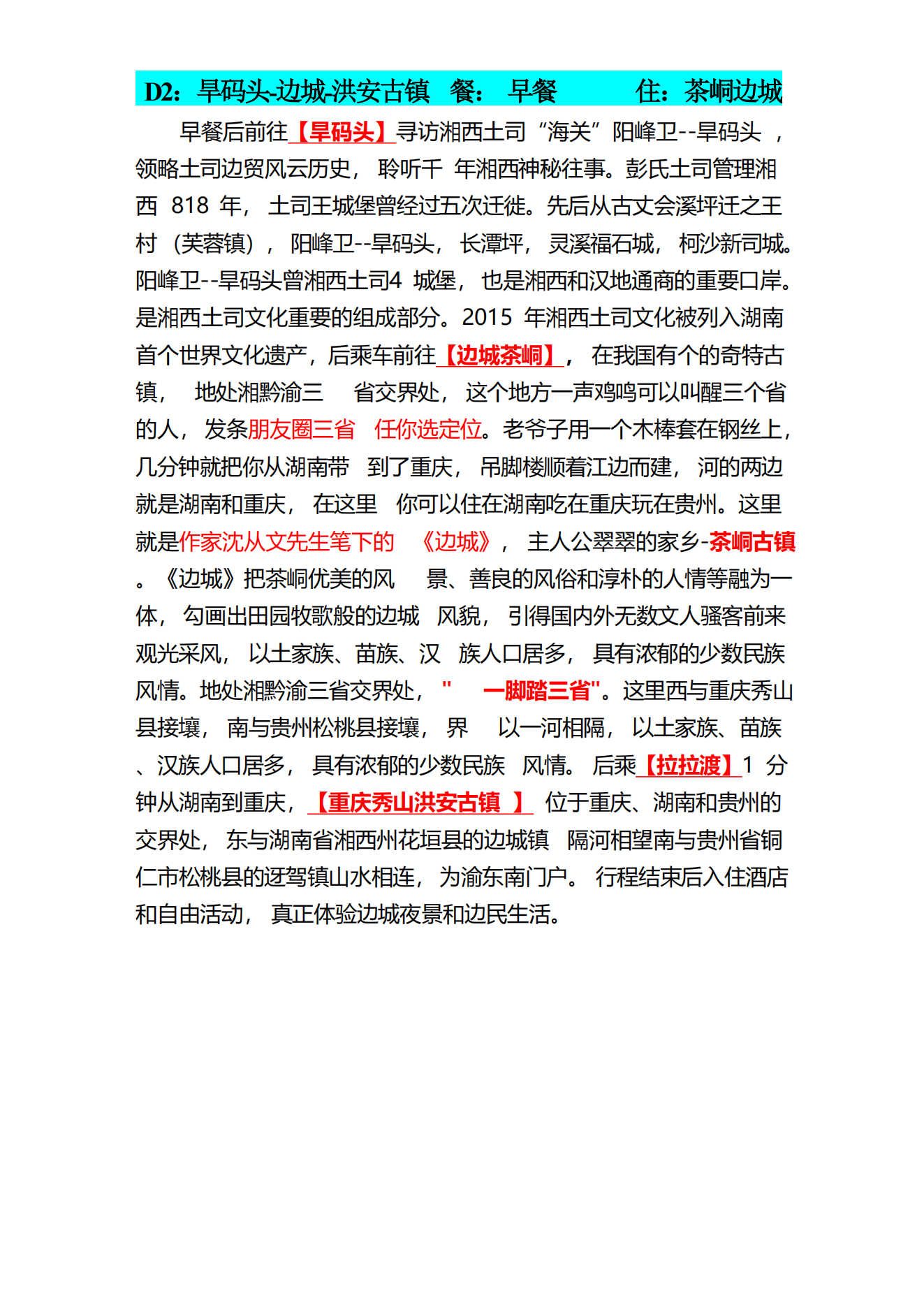 | 目 的 地: | 湖南湘西土家族苗族自治州 |
